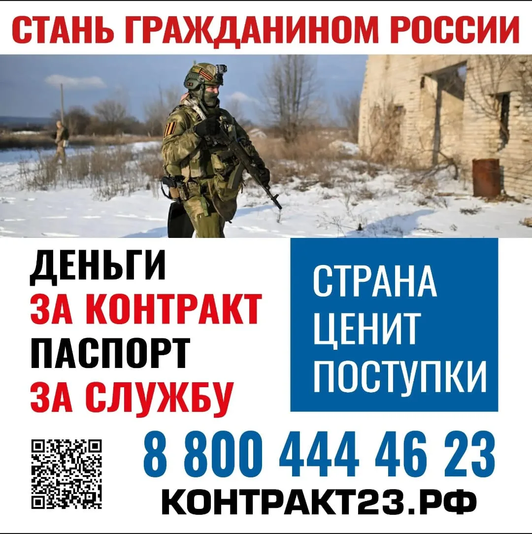Больше подробностей можно узнать по телефону: 8(800)444-46-23 или на сайте контракт23.рф. Победа будет за нами!