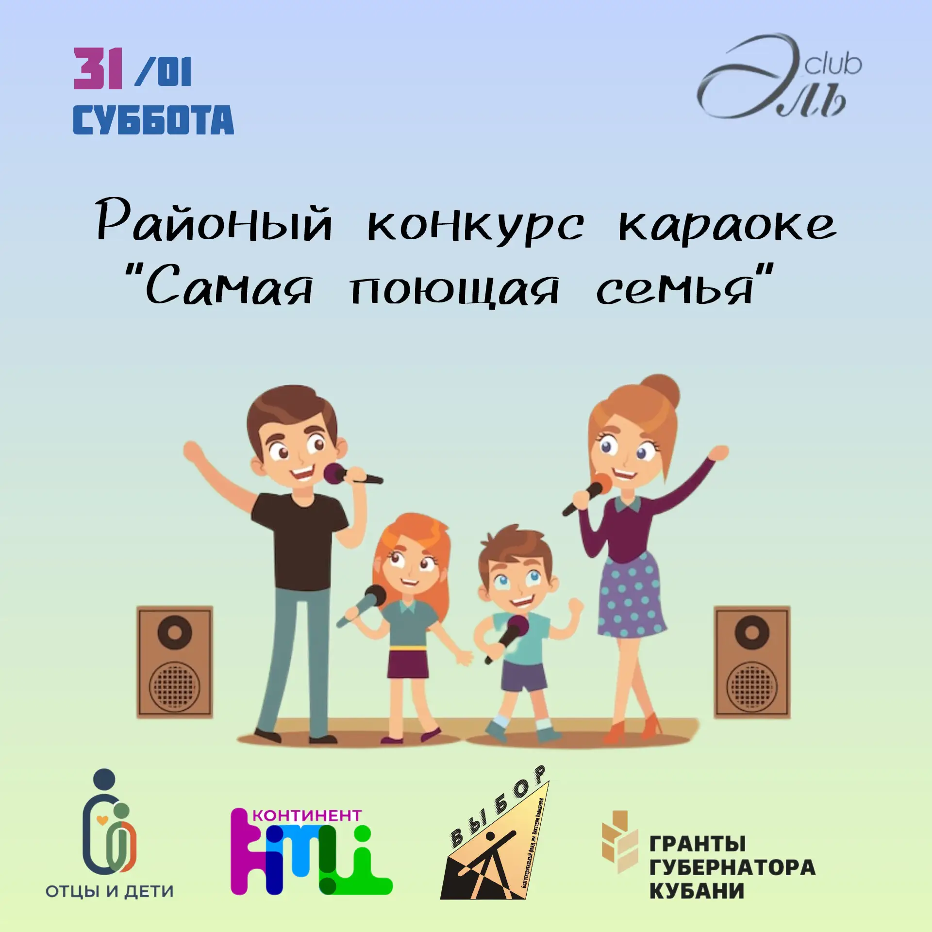 ПРИГЛАШАЕМ СЕМЬИ С ДЕТЬМИ ОТ 8 ДО 16 ЛЕТ НА КОНКУРС КАРАОКЕ «САМАЯ ПОЮЩАЯ СЕМЬЯ» 31 января в 15.00 часов, ст.Петровская спортивно-развлекательный комплекс «ЭЛЬ». Подробнее