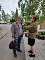 6 мая 2025 года, в преддверии одного из самых значимых праздников для нашей страны – Дня Победы, на территории ПАО «Славянский кирпич» в хуторе Галицын, специалисты Дома культуры «Кировский», в рамках всероссийской патриотической акции «Георгиевская ленточка», раздавали работникам предприятия чёрно-оранжевые ленты, как знак глубокой признательности тем, кто сражался за наше будущее. | |