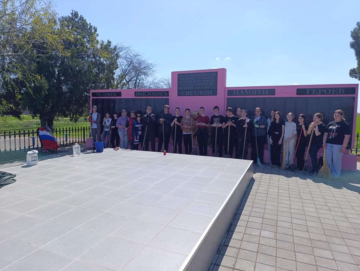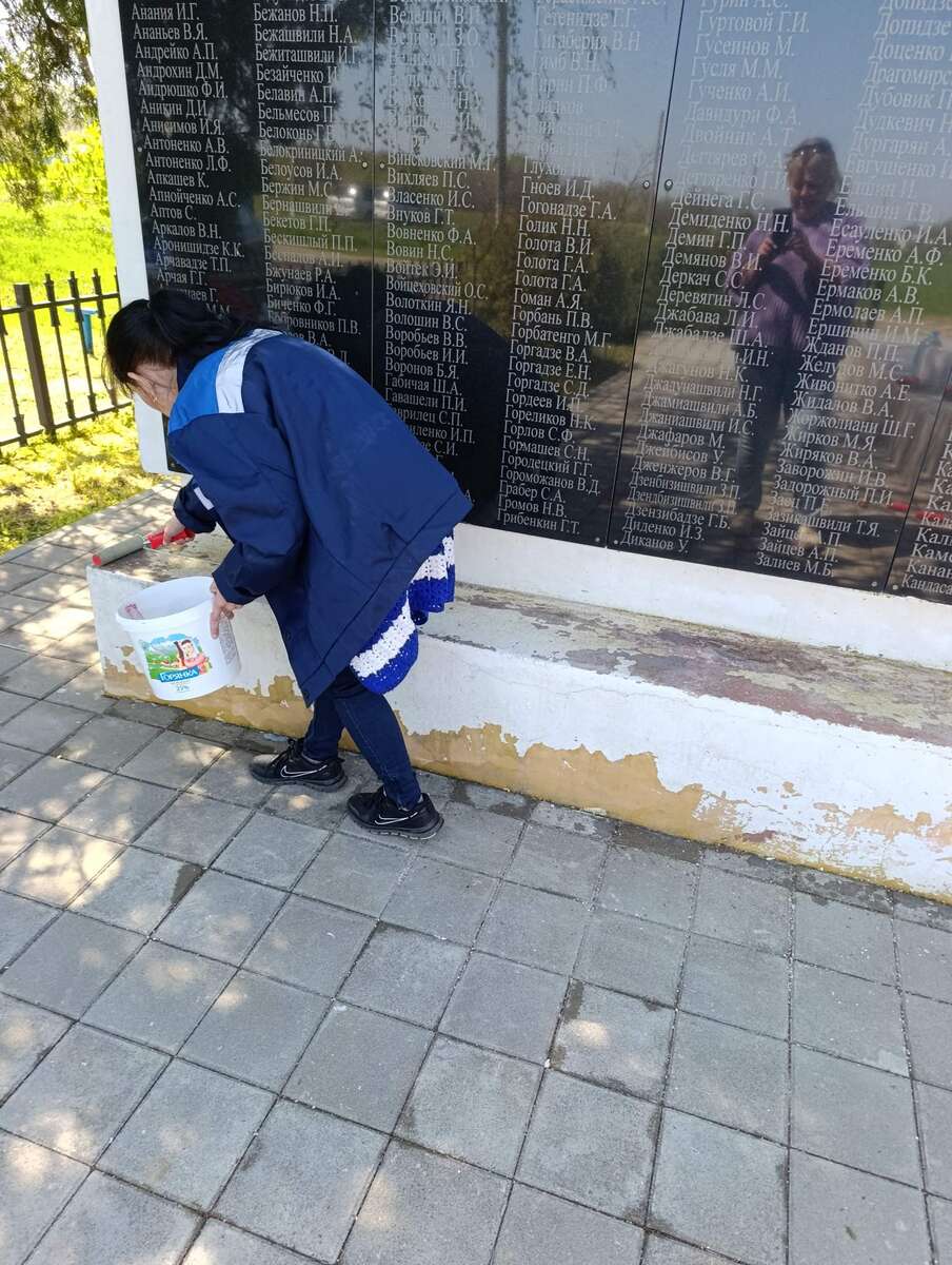 Благоустройство памятника к празднику Великой Победы — это дань памяти перед поколением, прошедшим войну, перед их мужеством и стойкостью. Это, та малая часть наших дел, с помощью которых мы выражаем свою благодарность всем тем, кто оставил свою жизнь, ради мирного неба в будущем. Это забота о будущем нашего села, чтобы молодое поколение чтило память наших прадедов. Наша главная задача пронести эту память через года. Чистый памятник — это дань уважения прошлому, истории, без которого нет будущего.