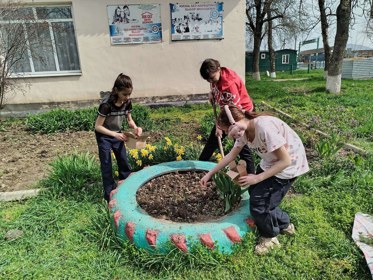 Дети с искренней радостью и усердием взялись за дело: бережно разравнивали землю, а затем с восторгом посеяли яркие цветы, которые уже совсем скоро украсят территорию клуба. Этот субботник стал не только вкладом в благоустройство родного села, но и настоящим праздником единения, добра и заботы о красоте окружающего мира.