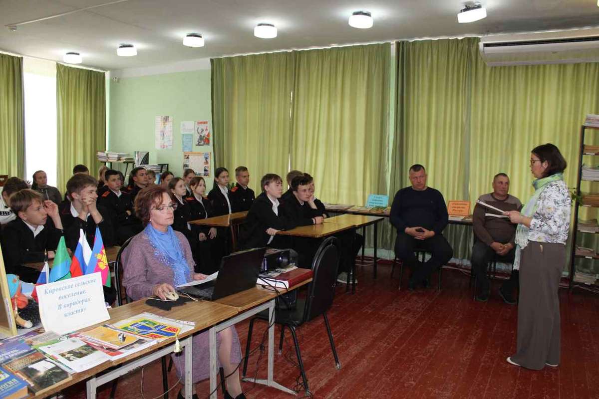 22 апреля 2025 года специалисты сельской библиотеки хутора Галицын и Дома Культуры «Кировский» провели час информации «Управление на месте или Школа успеха по «Кировски», приуроченный ко Дню местного самоуправления. На мероприятии присутствовали учащиеся 8-х классов МБОУ СОШ № 39. Библиотекарь познакомила ребят с историей праздника, рассказала историю создания Кировского сельского совета. Глава поселения Евгений Николаевич Капуста рассказал о работе местного самоуправления в Кировском сельском поселении. Депутат Александр Валерьевич Бетнев рассказал о том, для чего нужны депутаты и как они помогают жителям нашего поселения. После просмотра видеоролика «Земства России» участники ответили на вопросы викторины «Что вы знаете о местном самоуправлении». К мероприятию оформлена книжная выставка «Мое родное поселение», где была представлена информация о Дне местного самоуправления, накопительные папки с историей Кировского сельского поселения, биографиями жителей поселения, имеющие награды за труд, книги: «Славянский район: история и современность», «Что? Где? Когда? В Славянском районе», историко–краеведческий альманах «Копыл», фотоальбом «1990-2023гг. Кировское сельское поселение». Беседа сопровождалась показом слайд – презентации. Главный библиотекарь Ю.Н. Скороварова | |