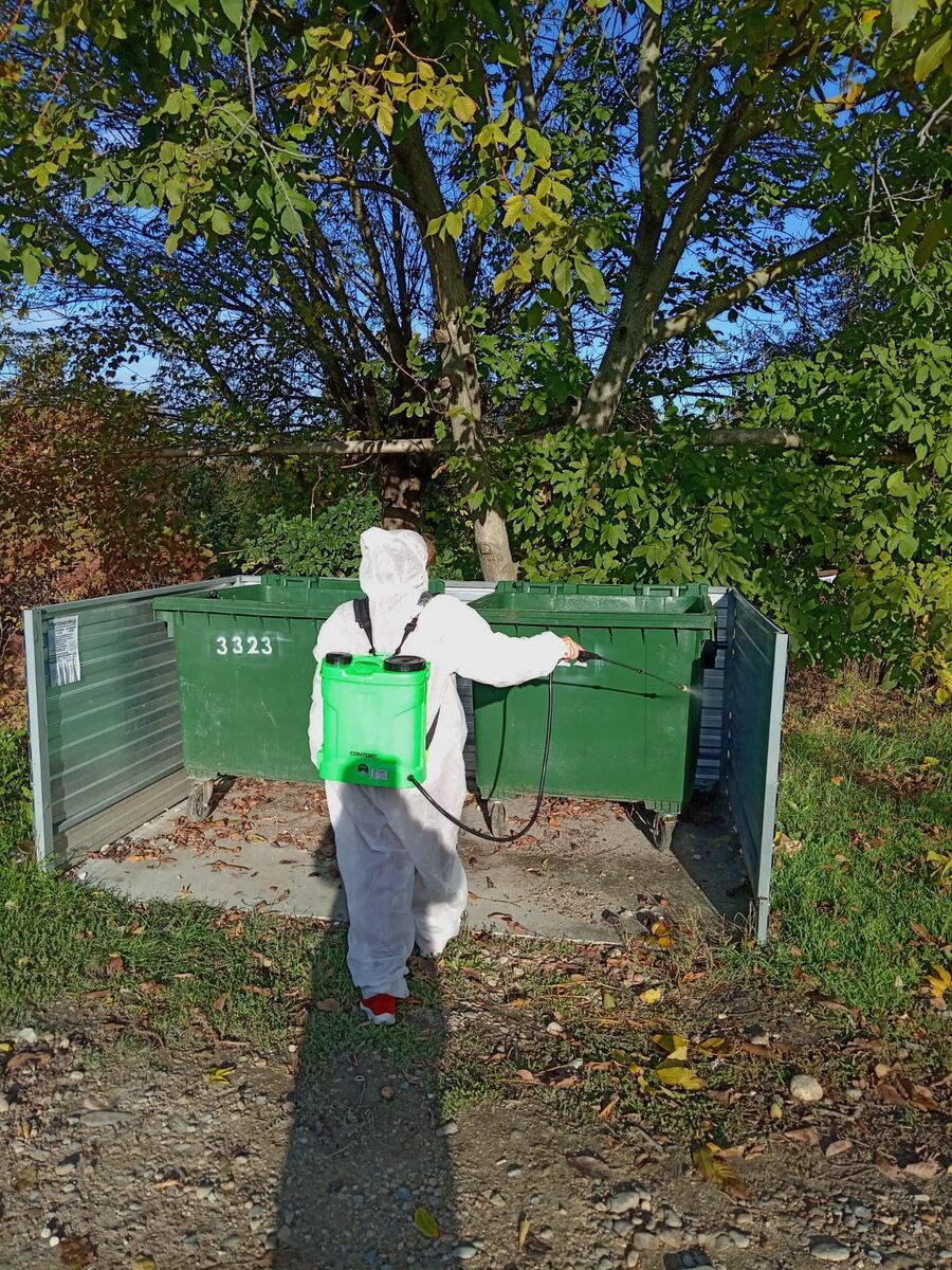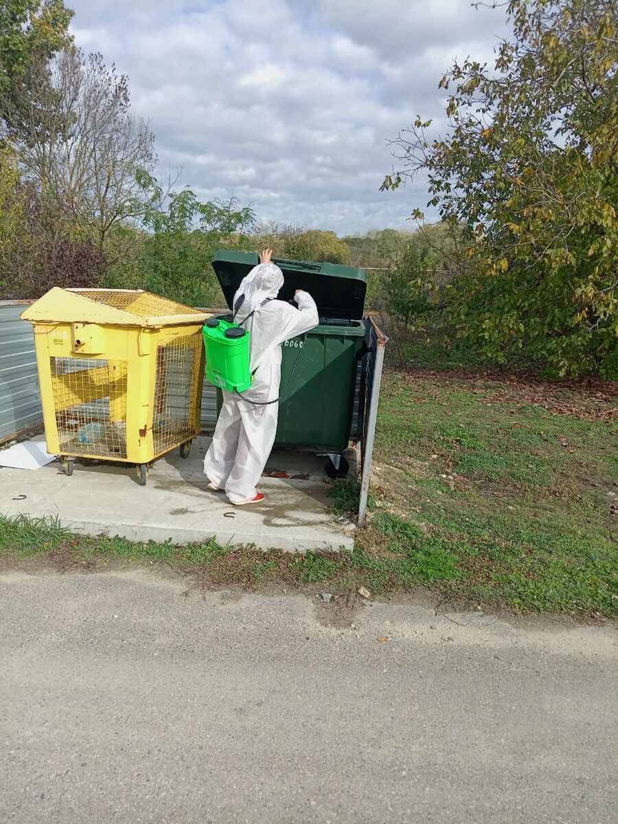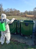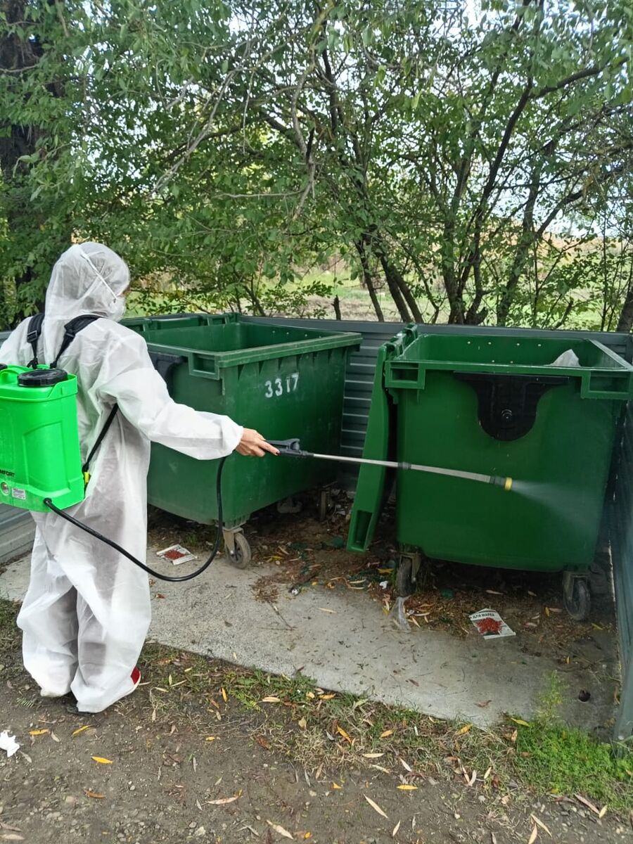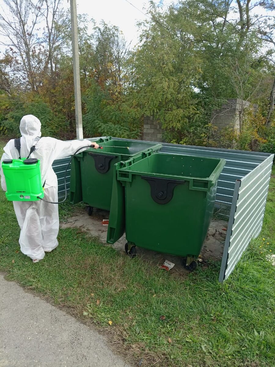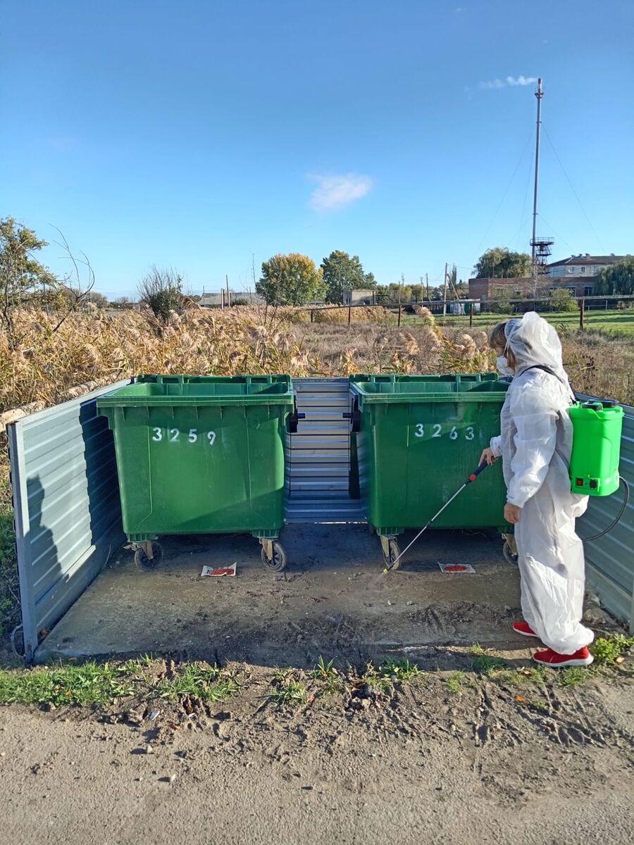 22 октября проводились работы по дезинсекции и дератизазии мусорных контейнеров и контейнерных площадок на территории Кировского сельского поселения.