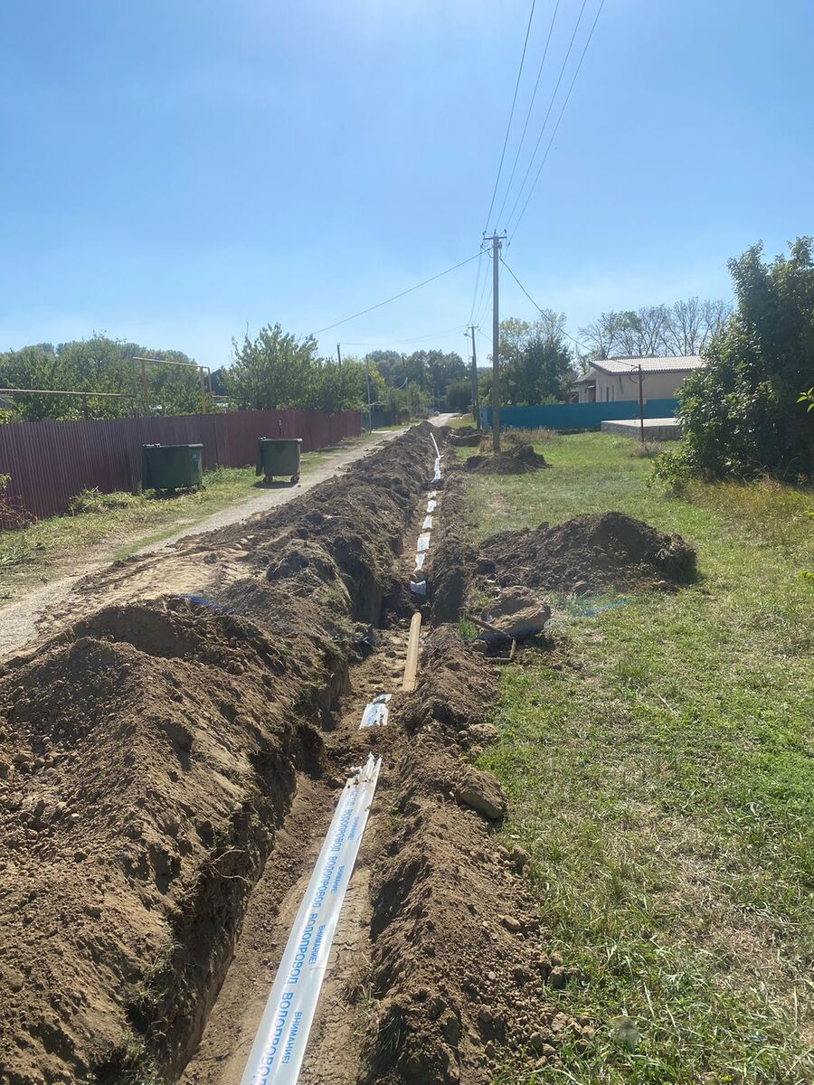 В рамках Федерального проекта «Модернизация коммунальной инфраструктуры» активно продолжаются работы по прокладке нового водопровода в х.Галицын. На настоящий момент по ул. Заречная, 99 произвели рытье водопроводной траншеи для дальнейшей укладки труб. |
