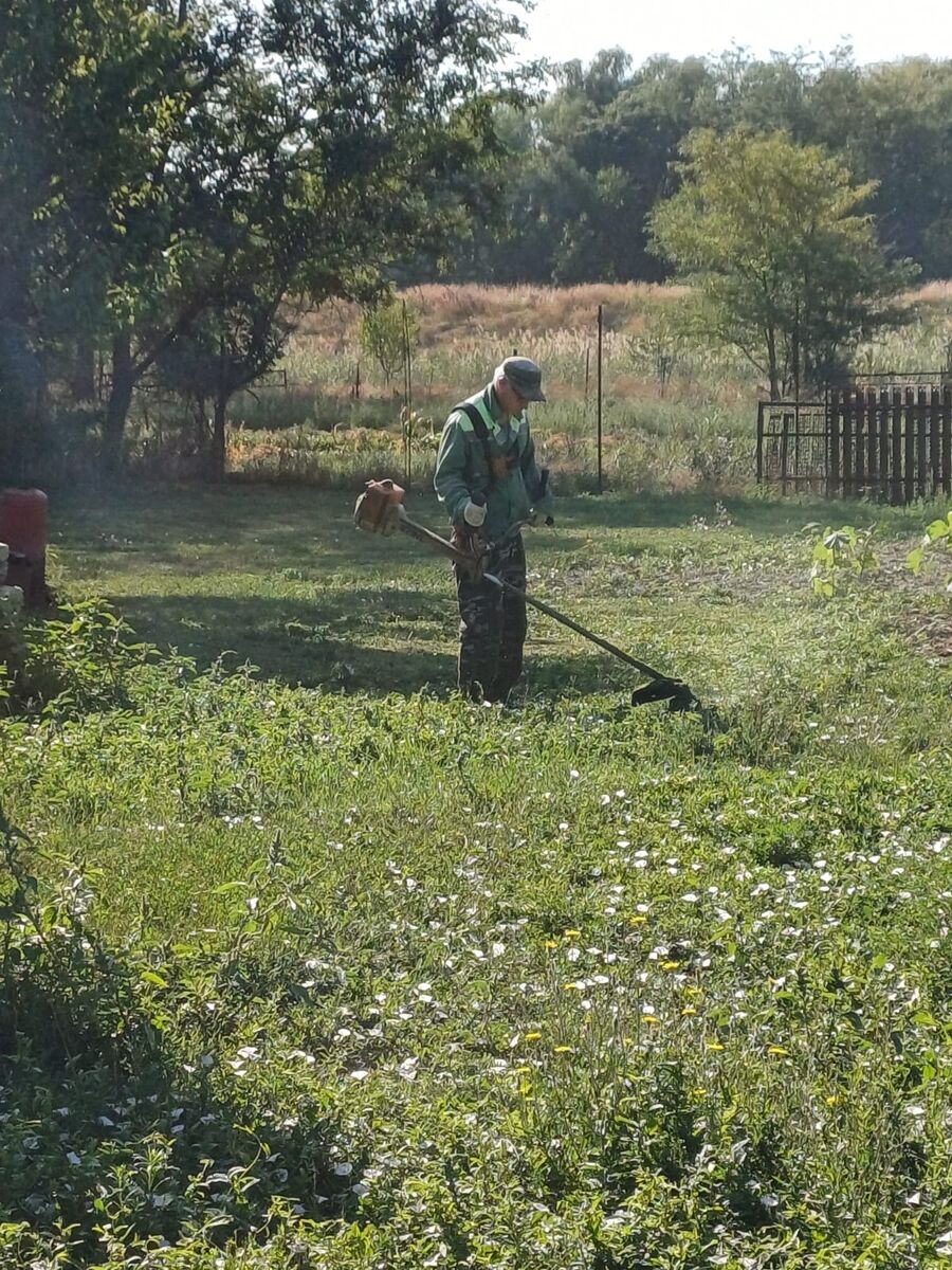 Покос сорной растительности территории домовладения семьи участника СВО ул. Хуторская с. Погорелово